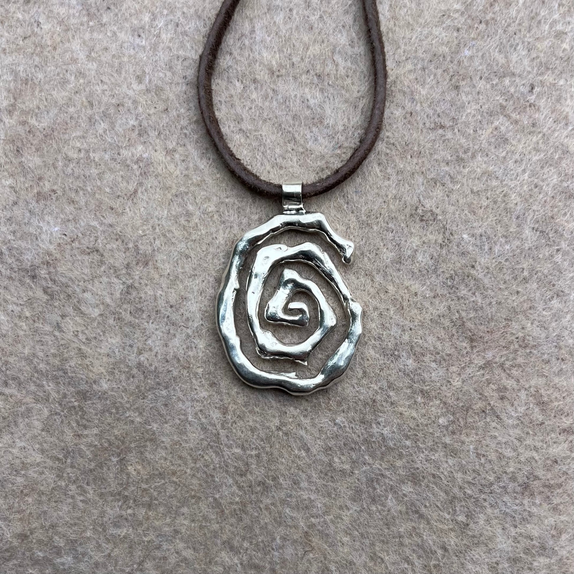 A chunky and organically shaped spiral pendant made from 100% recycled sterling silver.